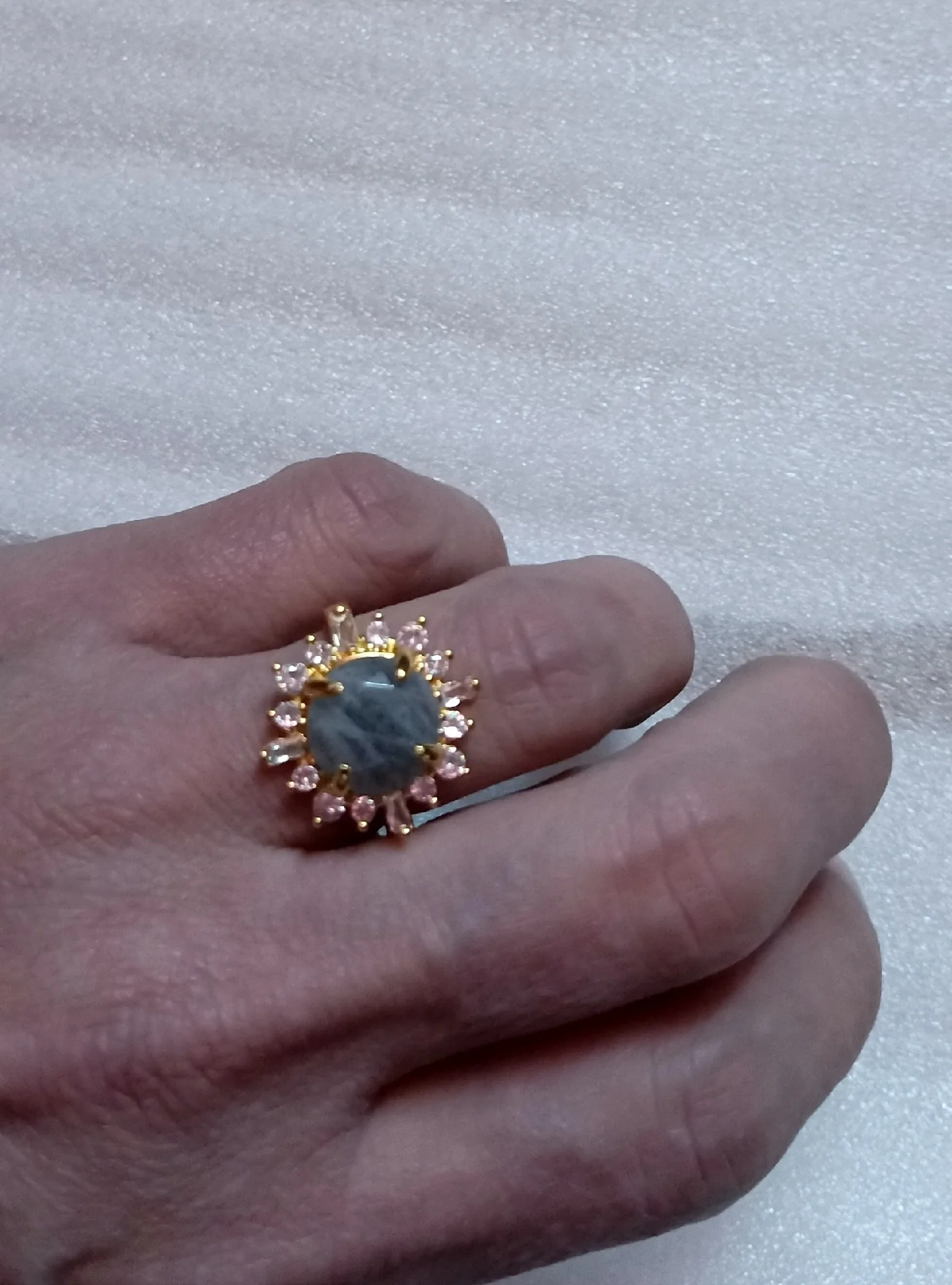 Ring Feature: Faceted , Adjustable Ring , Gemstone , Gold Color , Natural Stone , Rhinestone