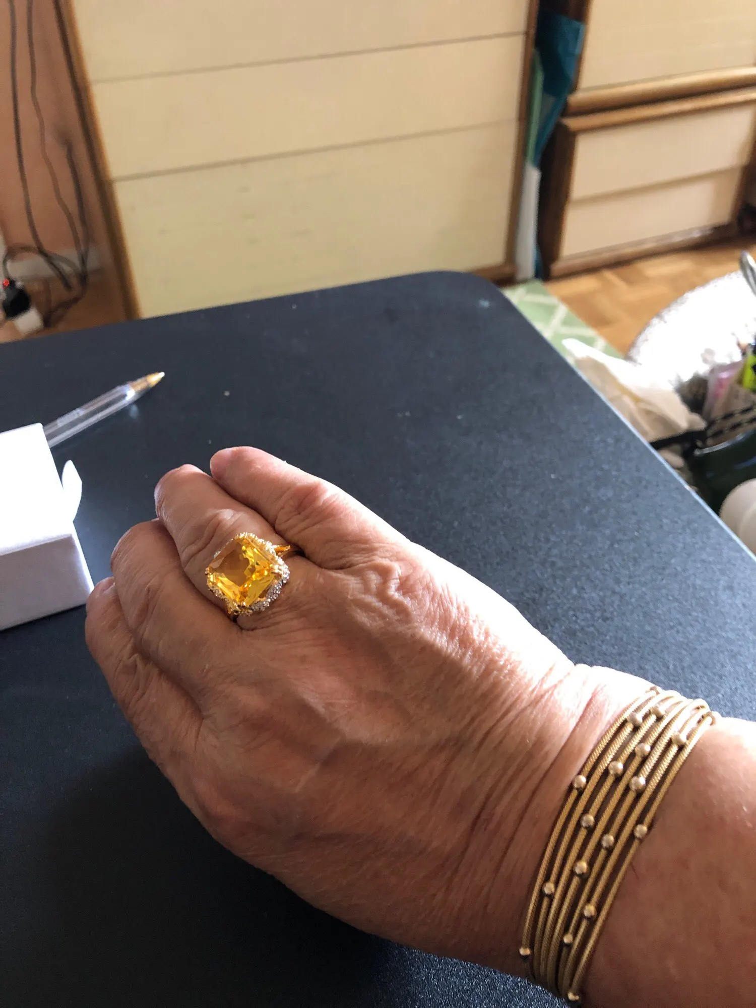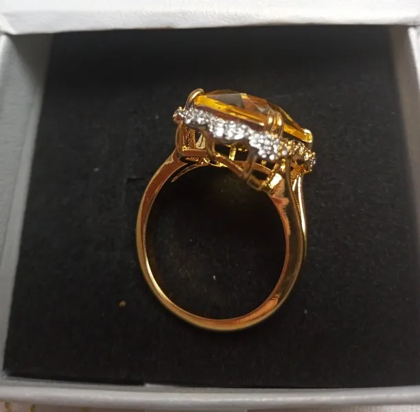 Introducing the 14K Gold Topaz Ring, an exquisite piece of jewelry designed for women who appreciate elegance. This stunning ring features a medium yellow gemstone set in a 14K gold color, complemented by sparkling zircon stones in a pave setting.