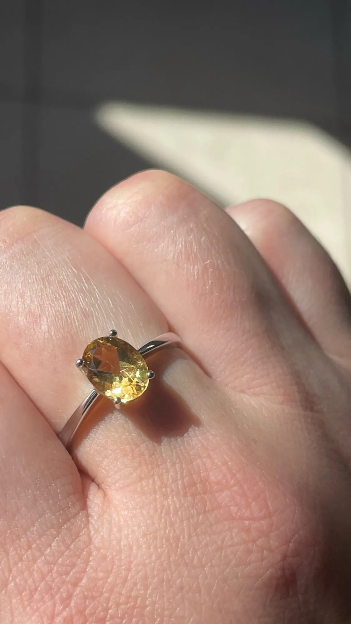 Add a touch of sunshine to your jewelry collection with this Oval Yellow Citrine Sterling Silver Ring. Crafted from 925 sterling silver, this stunning ring features a genuine natural citrine gemstone, cut in a classic oval shape.