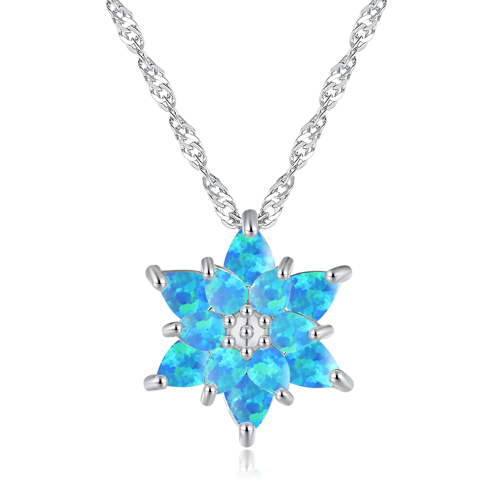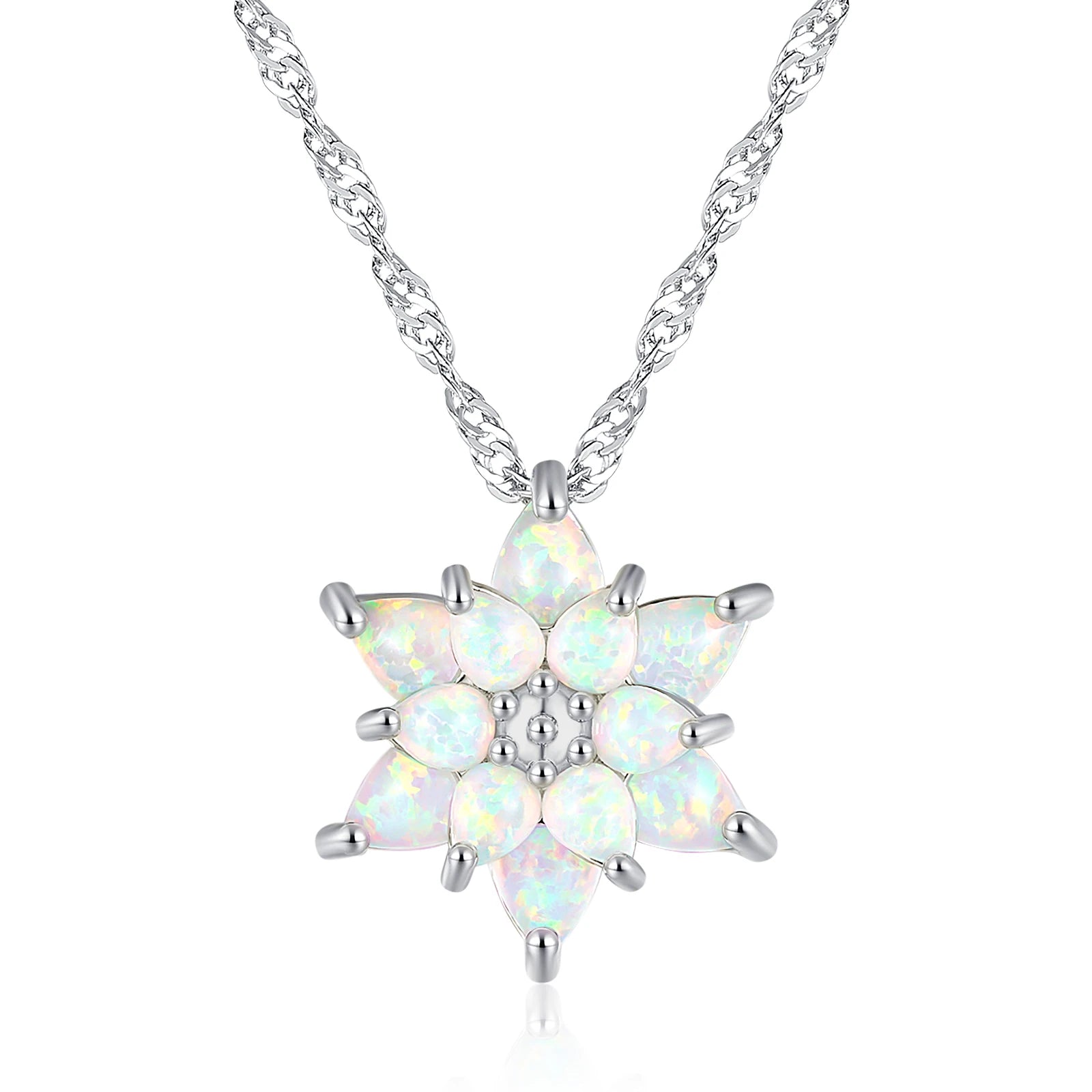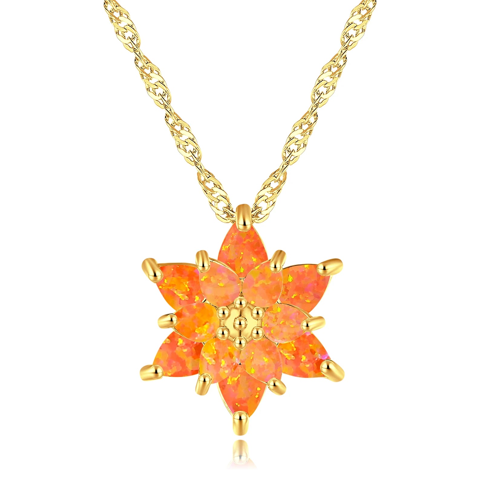 CiNily Delicate Flower Shaped Fire Opal Pendant Necklace Rose Gold Plated Trendy Jewelry Gifts for Women Girls(with Chain)