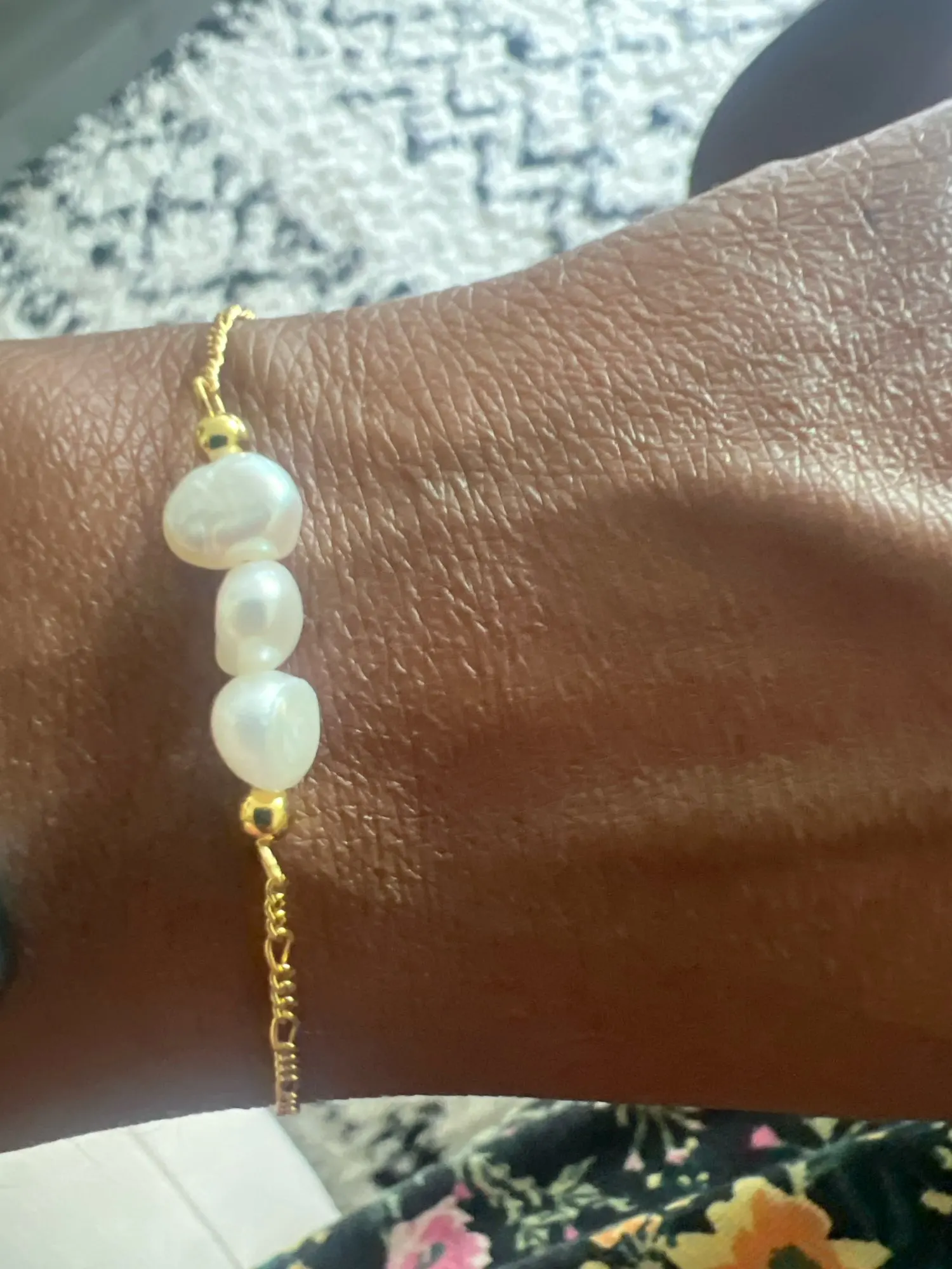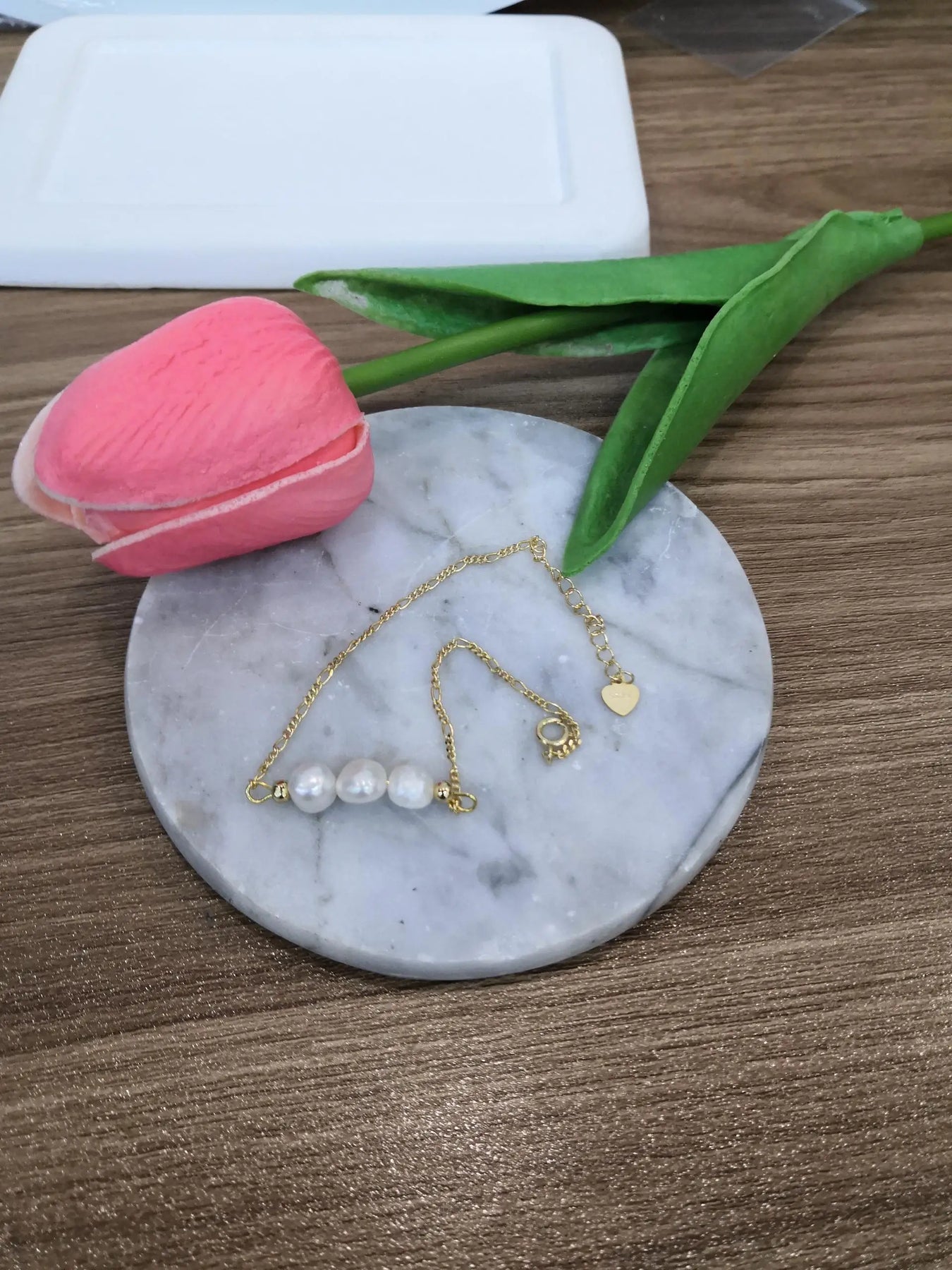 This elegant bracelet features three imitation pearl beads on a delicate 925 sterling silver chain. The heart charm adds a touch of love and sophistication, making it perfect for any occasion.