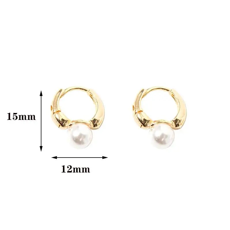 Add a touch of elegance to any outfit with these Simple Cute Pearl Hoop Earrings. Designed in the trendy Korean style, these tiny earrings feature simulated pearls set in gold-colored copper, offering a blend of vintage charm and modern simplicity.