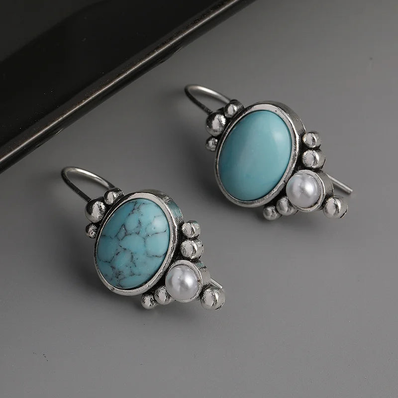 Add a touch of classic charm with these Vintage Turquoise Faux Pearl Drop Dangle Earrings. Designed for women and girls, these earrings feature a stunning combination of turquoise and faux pearls, perfect for enhancing any outfit.