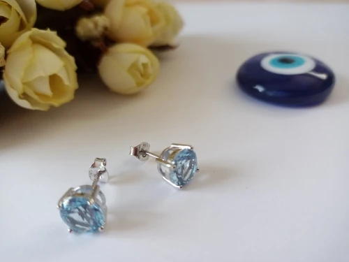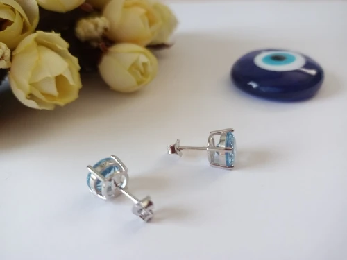 Sky Blue Topaz Stud Earrings in 925 Sterling Silver