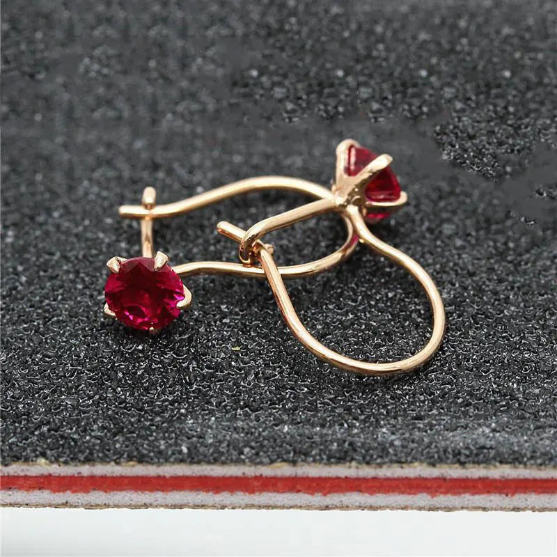 These elegant drop earrings feature stunning rubies set in 14K rose gold with a unique purple gold plating. Designed for women, these earrings offer a touch of sweet luxury, perfect for any occasion.