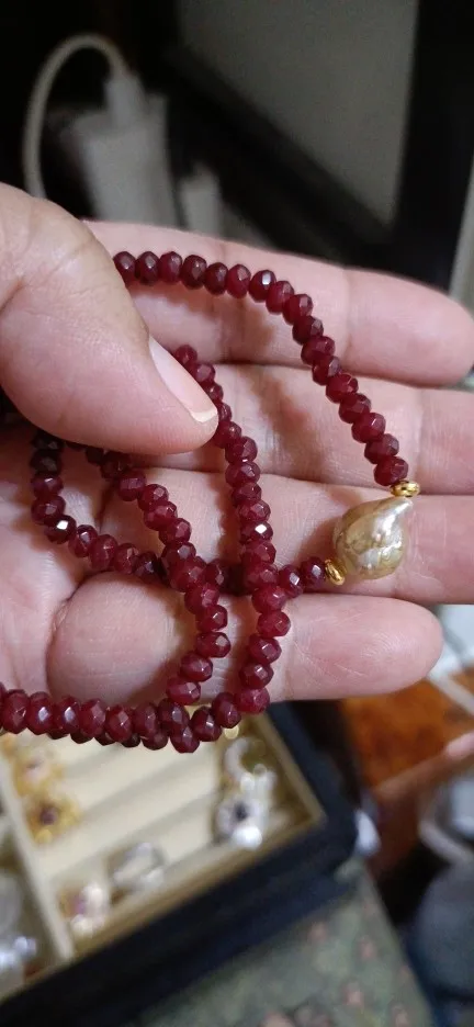 Perfect for parties and special occasions, this classic-style necklace comes with a durable link chain, ensuring both style and longevity. The combination of baroque pearls and ruby adds a unique and sophisticated charm to any outfit.