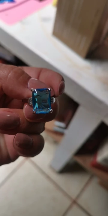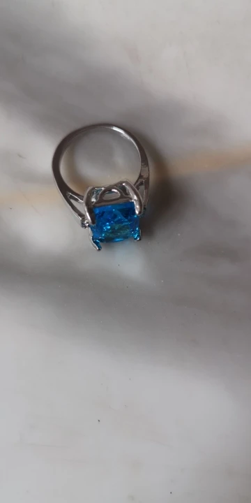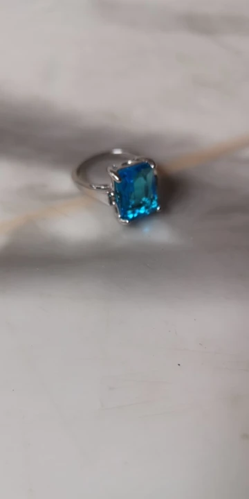 Crafted from lead-tin alloy and adorned with cubic zirconia, this ring is designed for women who appreciate both style and substance. The prong setting highlights the irregular shape of the aquamarine, making each ring unique.