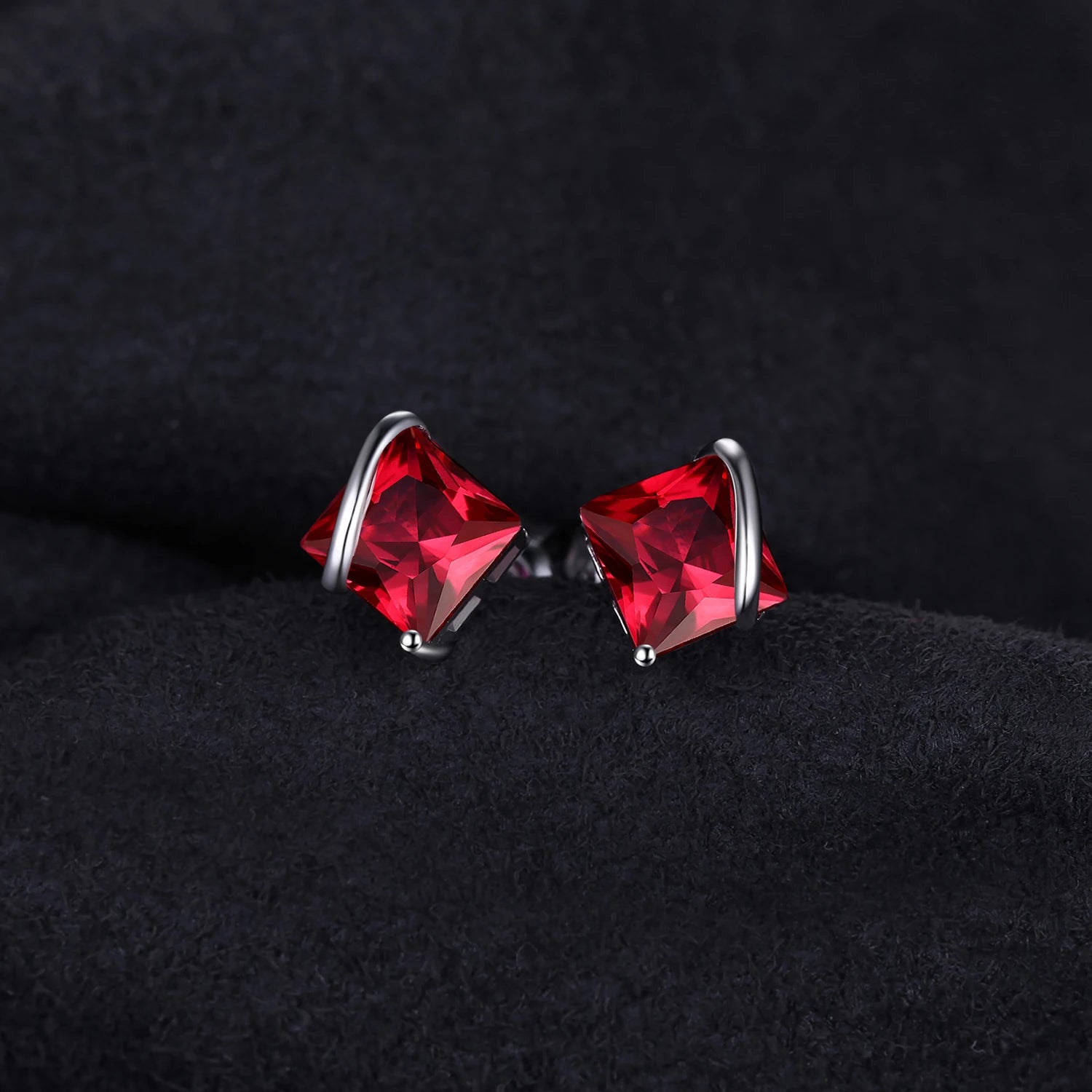 Add a touch of elegance with these Square Created Red Ruby Stud Earrings, crafted from 100% real 925 sterling silver. These fashionable earrings feature vibrant red rubies, making them perfect for women who appreciate cute and romantic jewelry.
